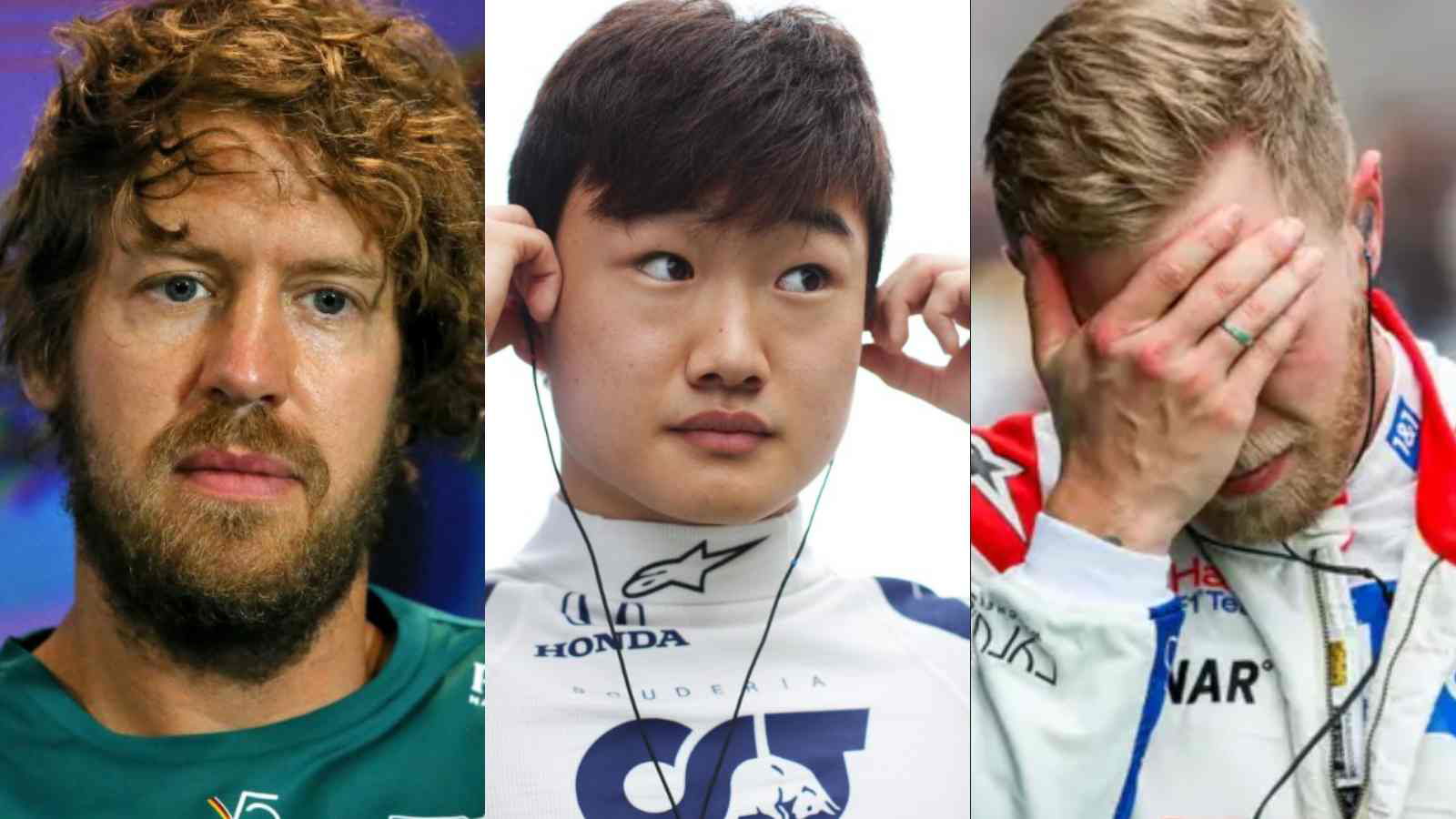 Sebastian Vettel (left) , Yuki Tsunoda (Middle) and Kevin Magnussen (Right)