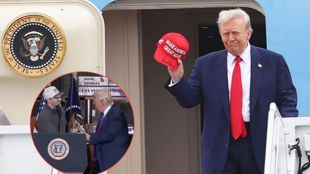 Gunner Stockton, quarterback for the Georgia Bulldogs, greeted President Donald Trump at the airport before joining him on stage in his campaign.