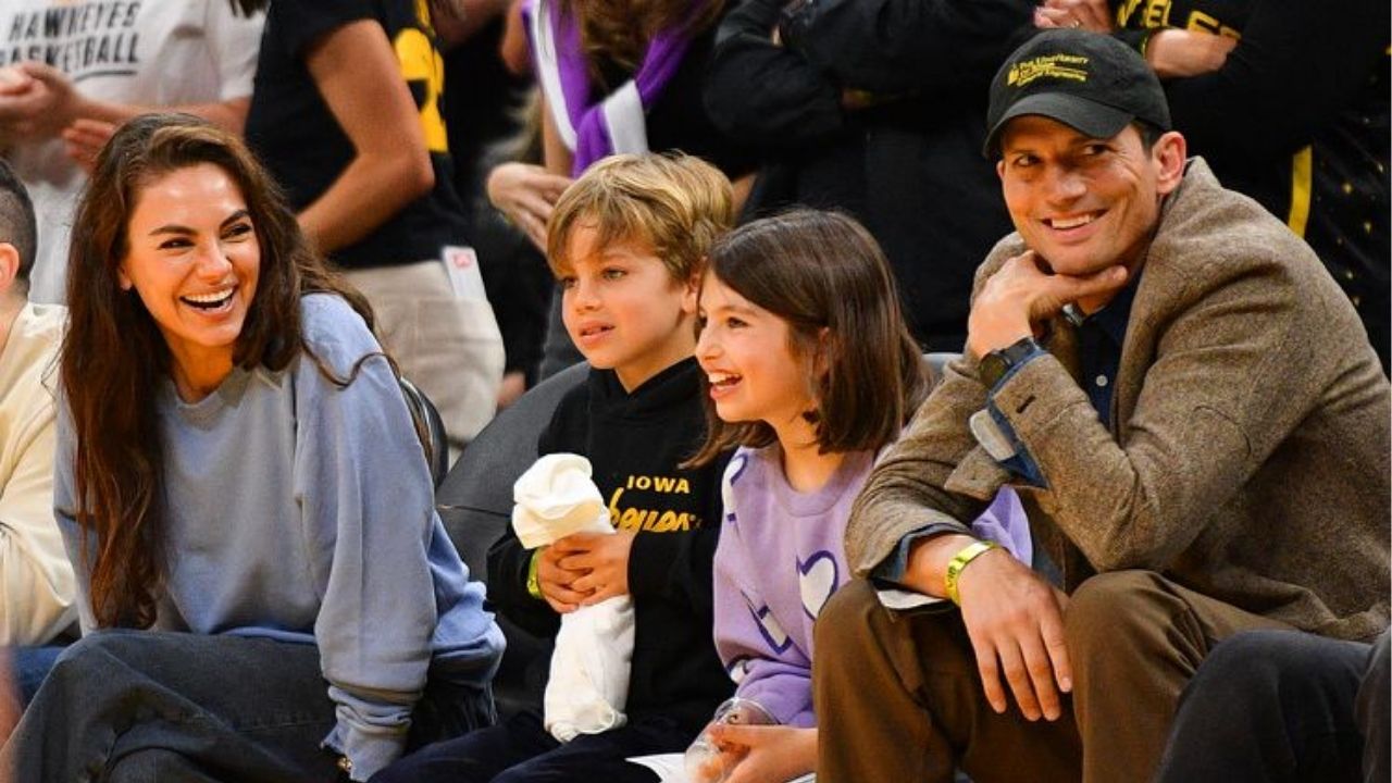 Ashton Kutcher and Mila Kunis with their daughter Wyatt Isabelle and son Dimitri Portwood (Image via Getty Images)