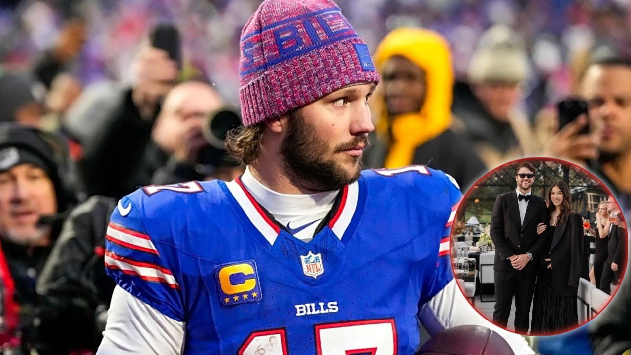 Buffalo Bills quarterback Josh Allen and his wife, Hailee Steinfeld, attended the wedding of Seattle Seahawks QB Sam Darnold and Katie Hoofnagle on April 3. Keeping true to the dress code, Allen and Steinfeld wore all-black, enhancing the “classic and timeless, black-and-white” wedding aesthetic.